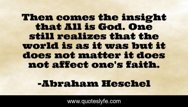 This page presents the quote "Then comes the insight that All is God. One still realizes that the world is as it was but it does not matter it does not affect one's faith.". Author of this quote is Abraham Heschel. .