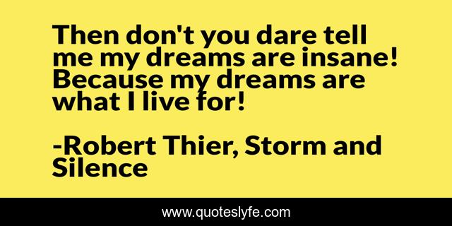 This page presents the quote "Then don't you dare tell me my dreams are insane! Because my dreams are what I live for!". Author of this quote is Robert Thier, Storm and Silence. This quote is about feminism, courage, equality, adventure, fiery,.