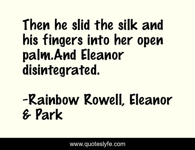 This page presents the quote "Then he slid the silk and his fingers into her open palm.And Eleanor disintegrated.". Author of this quote is Rainbow Rowell, Eleanor & Park. .