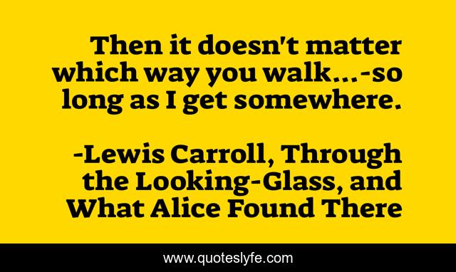 This page presents the quote "Then it doesn't matter which way you walk...-so long as I get somewhere.". Author of this quote is Lewis Carroll, Through the Looking-Glass, and What Alice Found There. This quote is about bunny, white-queen, alice, fiction,.