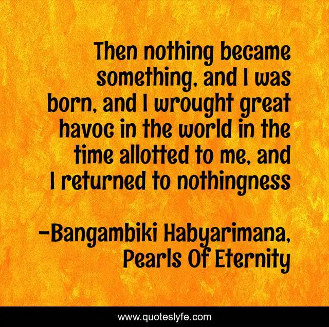 "Bangambiki Habyarimana, Pearls Of Eternity Quotes." Quoteslyfe.com, 2025. Sun. 07 Dec. 2025. <https://www.quoteslyfe.com/quote/Then-nothing-became-something-and-I-was-115717>.