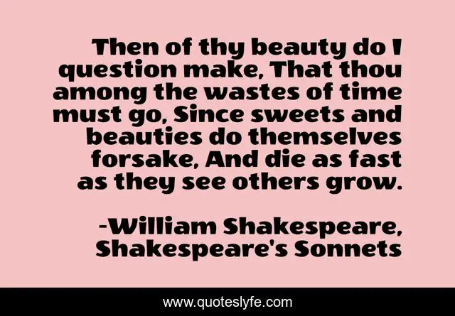Then of thy beauty do I question make, That thou among the wastes of time must go, Since sweets and beauties do themselves forsake, And die as fast as they see others grow.