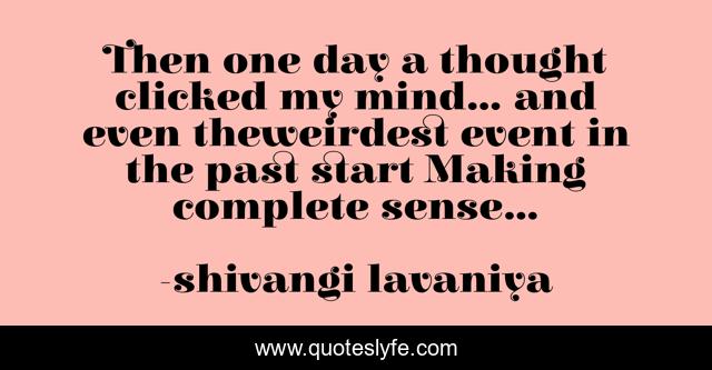 This page presents the quote "Then one day a thought clicked my mind... and even theweirdest event in the past start Making complete sense...". Author of this quote is shivangi lavaniya. This quote is about thought, sense,.