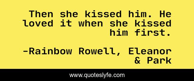 This page presents the quote "Then she kissed him. He loved it when she kissed him first.". Author of this quote is Rainbow Rowell, Eleanor & Park. .