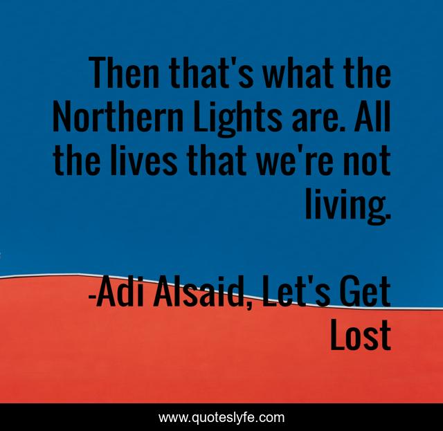 "Adi Alsaid, Let's Get Lost Quotes." Quoteslyfe.com, 2025. Mon. 08 Dec. 2025. <https://www.quoteslyfe.com/quote/Then-that-s-what-the-Northern-Lights-28454>.