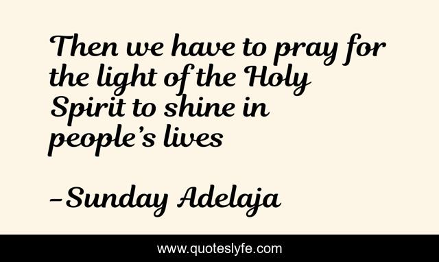 This page presents the quote "Then we have to pray for the light of the Holy Spirit to shine in people’s lives". Author of this quote is Sunday Adelaja. This quote is about pray, light,.