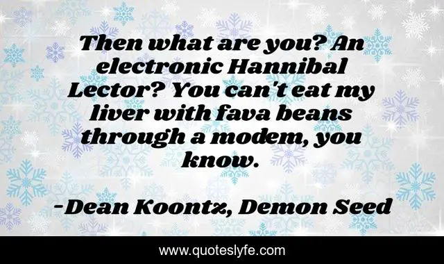 "Dean Koontz, Demon Seed Quotes." Quoteslyfe.com, 2025. Sat. 06 Dec. 2025. <https://www.quoteslyfe.com/quote/Then-what-are-you-An-electronic-Hannibal-45182>.