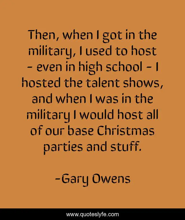 This page presents the quote "Then, when I got in the military, I used to host - even in high school - I hosted the talent shows, and when I was in the military I would host all of our base Christmas parties and stuff.". Author of this quote is Gary Owens. This quote is about military, school, talent,.