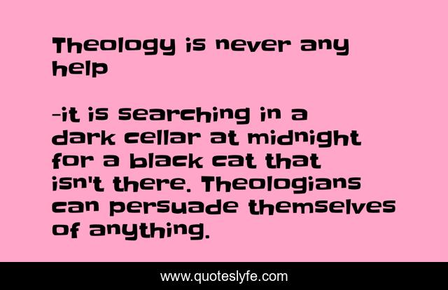 "it is searching in a dark cellar at midnight for a black cat that isn't there. Theologians can persuade themselves of anything. Quotes." Quoteslyfe.com, 2025. Fri. 05 Dec. 2025. <https://www.quoteslyfe.com/quote/Theology-is-never-any-help-201672>.