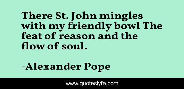 This page presents the quote "There St. John mingles with my friendly bowl The feat of reason and the flow of soul.". Author of this quote is Alexander Pope. .