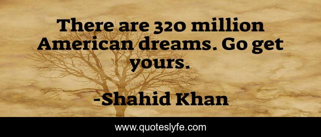 This page presents the quote "There are 320 million American dreams. Go get yours.". Author of this quote is Shahid Khan. This quote is about go, american, million,.