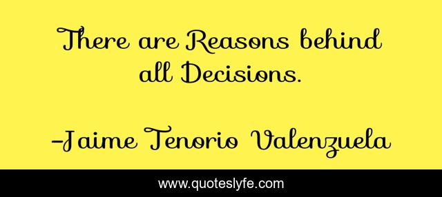 This page presents the quote "There are Reasons behind all Decisions.". Author of this quote is Jaime Tenorio Valenzuela. This quote is about reasons, all, decisions, behind,.