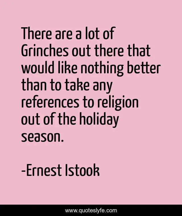 This page presents the quote "There are a lot of Grinches out there that would like nothing better than to take any references to religion out of the holiday season.". Author of this quote is Ernest Istook. This quote is about better, religion, holiday,.