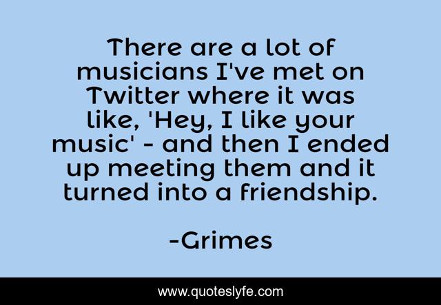 This page presents the quote "There are a lot of musicians I've met on Twitter where it was like, 'Hey, I like your music' - and then I ended up meeting them and it turned into a friendship.". Author of this quote is Grimes. This quote is about music, musicians, meeting,.