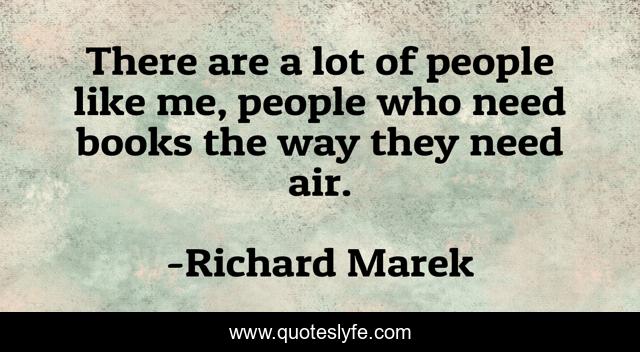 This page presents the quote "There are a lot of people like me, people who need books the way they need air.". Author of this quote is Richard Marek. .