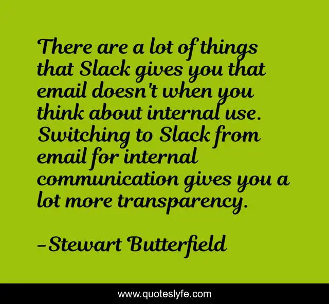 This page presents the quote "There are a lot of things that Slack gives you that email doesn't when you think about internal use. Switching to Slack from email for internal communication gives you a lot more transparency.". Author of this quote is Stewart Butterfield. This quote is about think, email,.