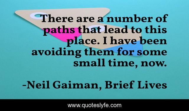 This page presents the quote "There are a number of paths that lead to this place. I have been avoiding them for some small time, now.". Author of this quote is Neil Gaiman, Brief Lives. This quote is about fantasy, graphic-novels,.