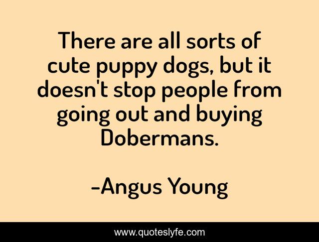 This page presents the quote "There are all sorts of cute puppy dogs, but it doesn't stop people from going out and buying Dobermans.". Author of this quote is Angus Young. This quote is about cute, dogs, people,.