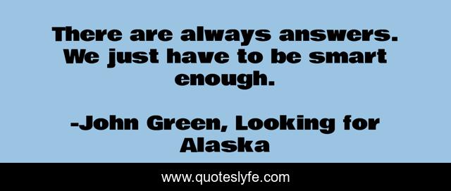 This page presents the quote "There are always answers. We just have to be smart enough.". Author of this quote is John Green, Looking for Alaska. This quote is about strength, problems, questions,.