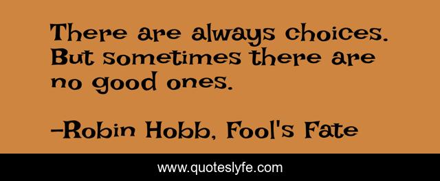 "Robin Hobb, Fool's Fate Quotes." Quoteslyfe.com, 2025. Fri. 05 Dec. 2025. <https://www.quoteslyfe.com/quote/There-are-always-choices-But-sometimes-there-93829>.