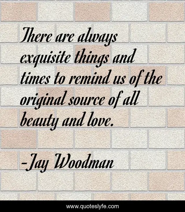 This page presents the quote "There are always exquisite things and times to remind us of the original source of all beauty and love.". Author of this quote is Jay Woodman. This quote is about beauty, love, exquisite, affection,.