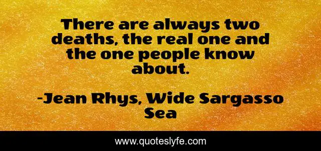 This page presents the quote "There are always two deaths, the real one and the one people know about.". Author of this quote is Jean Rhys, Wide Sargasso Sea. This quote is about real, death,.