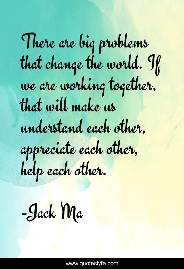This page presents the quote "There are big problems that change the world. If we are working together, that will make us understand each other, appreciate each other, help each other.". Author of this quote is Jack Ma. This quote is about working together, together,.