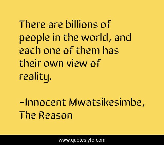 This page presents the quote "There are billions of people in the world, and each one of them has their own view of reality.". Author of this quote is Innocent Mwatsikesimbe, The Reason. This quote is about life, perception, reality, self-improvement, self-help, inspiration,.