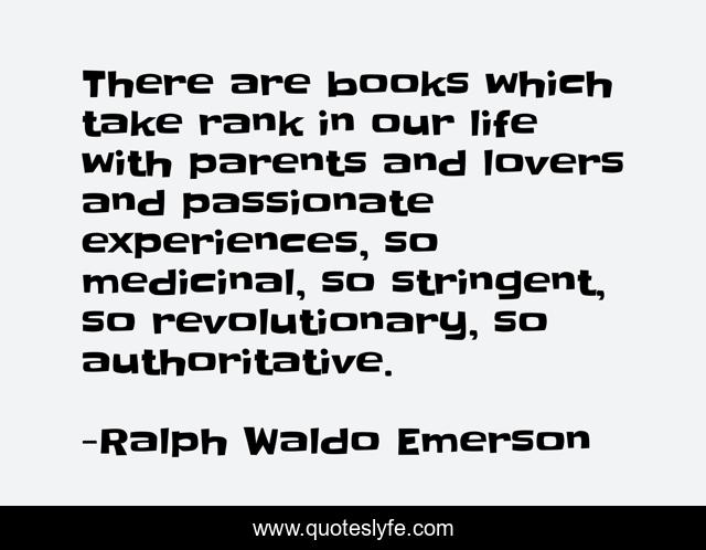 This page presents the quote "There are books which take rank in our life with parents and lovers and passionate experiences, so medicinal, so stringent, so revolutionary, so authoritative.". Author of this quote is Ralph Waldo Emerson. .