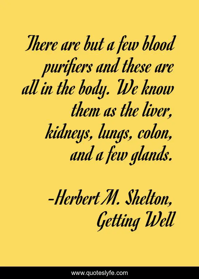 "Herbert M. Shelton, Getting Well Quotes." Quoteslyfe.com, 2025. Mon. 08 Dec. 2025. <https://www.quoteslyfe.com/quote/There-are-but-a-few-blood-purifiers-148216>.