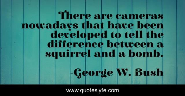 This page presents the quote "There are cameras nowadays that have been developed to tell the difference between a squirrel and a bomb.". Author of this quote is George W. Bush. This quote is about dumb, technology,.