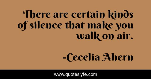 This page presents the quote "There are certain kinds of silence that make you walk on air.". Author of this quote is Cecelia Ahern. This quote is about romance, silence,.