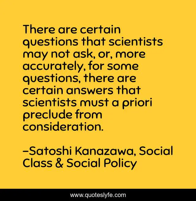 "Satoshi Kanazawa, Social Class & Social Policy Quotes." Quoteslyfe.com, 2025. Sat. 06 Dec. 2025. <https://www.quoteslyfe.com/quote/There-are-certain-questions-that-scientists-may-103128>.