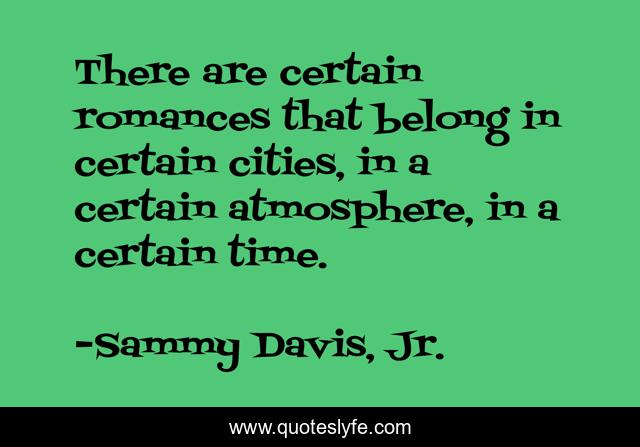This page presents the quote "There are certain romances that belong in certain cities, in a certain atmosphere, in a certain time.". Author of this quote is Sammy Davis, Jr.. This quote is about atmosphere, belong, time,.