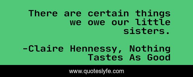 This page presents the quote "There are certain things we owe our little sisters.". Author of this quote is Claire Hennessy, Nothing Tastes As Good. This quote is about sisters, siblings, family,.