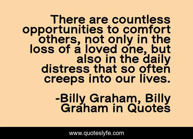 "Billy Graham, Billy Graham in Quotes Quotes." Quoteslyfe.com, 2025. Sat. 06 Dec. 2025. <https://www.quoteslyfe.com/quote/There-are-countless-opportunities-to-comfort-others-152838>.