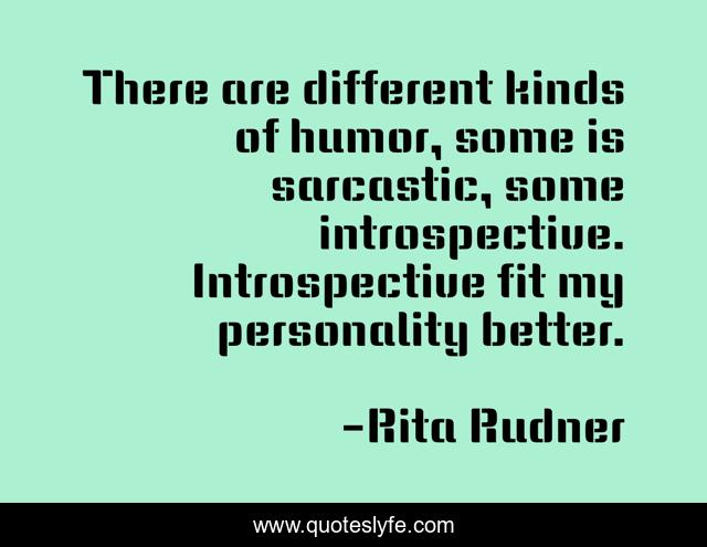 This page presents the quote "There are different kinds of humor, some is sarcastic, some introspective. Introspective fit my personality better.". Author of this quote is Rita Rudner. This quote is about better, personality,.