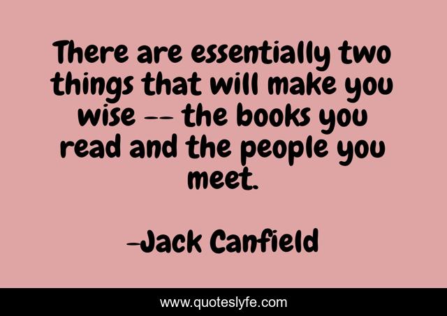 This page presents the quote "There are essentially two things that will make you wise -- the books you read and the people you meet.". Author of this quote is Jack Canfield. This quote is about books, book-sellers,.