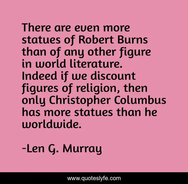 This page presents the quote "There are even more statues of Robert Burns than of any other figure in world literature. Indeed if we discount figures of religion, then only Christopher Columbus has more statues than he worldwide.". Author of this quote is Len G. Murray. This quote is about world, columbus, literature,.