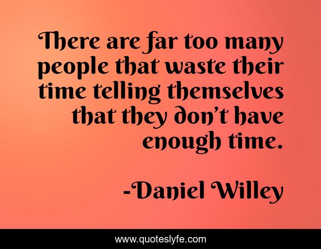 This page presents the quote "There are far too many people that waste their time telling themselves that they don’t have enough time.". Author of this quote is Daniel Willey. This quote is about time-management, waste-time, wasted-time, manage, people, time, waste,.