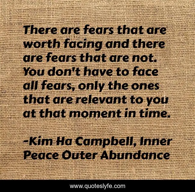 "Kim Ha Campbell, Inner Peace Outer Abundance Quotes." Quoteslyfe.com, 2025. Fri. 05 Dec. 2025. <https://www.quoteslyfe.com/quote/There-are-fears-that-are-worth-facing-14787>.