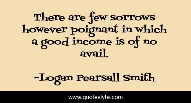 This page presents the quote "There are few sorrows however poignant in which a good income is of no avail.". Author of this quote is Logan Pearsall Smith. .