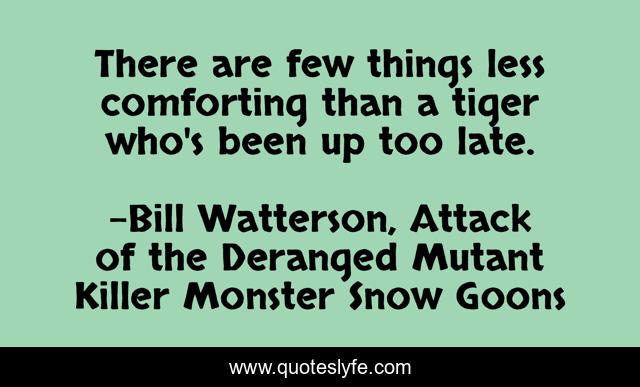This page presents the quote "There are few things less comforting than a tiger who's been up too late.". Author of this quote is Bill Watterson, Attack of the Deranged Mutant Killer Monster Snow Goons. This quote is about comic, comfort, humor,.