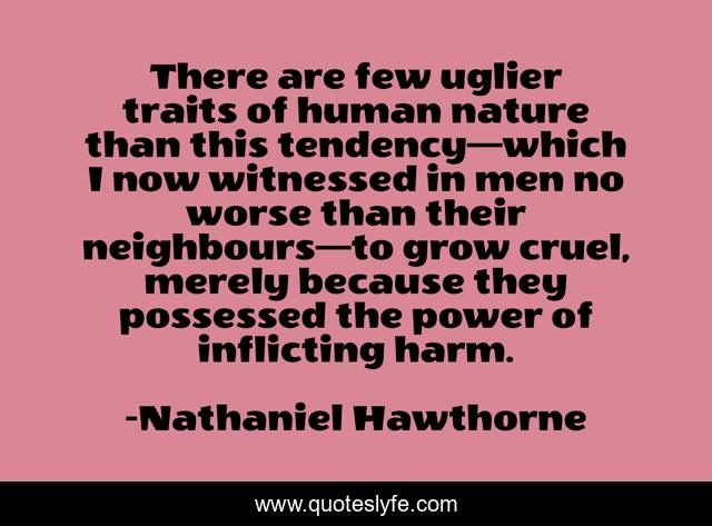 This page presents the quote "There are few uglier traits of human nature than this tendency—which I now witnessed in men no worse than their neighbours—to grow cruel, merely because they possessed the power of inflicting harm.". Author of this quote is Nathaniel Hawthorne. This quote is about human-nature, cruelty, power,.