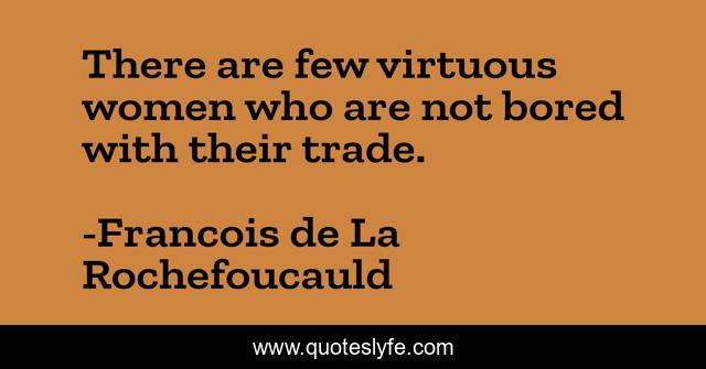 This page presents the quote "There are few virtuous women who are not bored with their trade.". Author of this quote is Francois de La Rochefoucauld. This quote is about virtuous, bored, trade,.