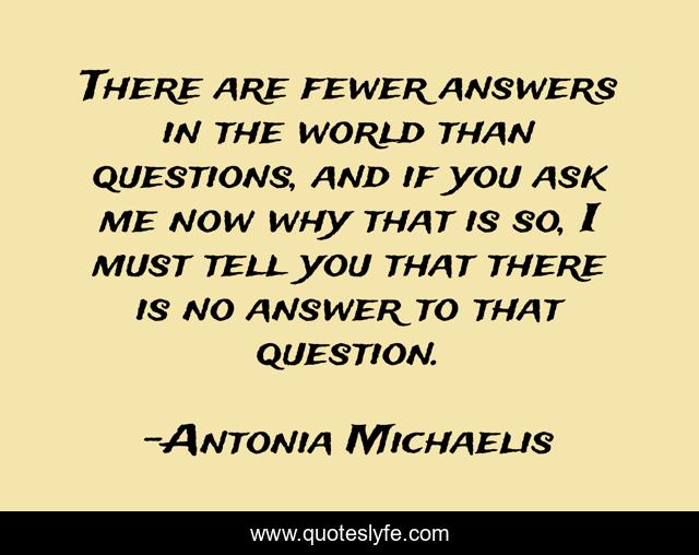 "Antonia Michaelis Quotes." Quoteslyfe.com, 2025. Fri. 05 Dec. 2025. <https://www.quoteslyfe.com/quote/There-are-fewer-answers-in-the-world-178401>.
