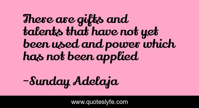 This page presents the quote "There are gifts and talents that have not yet been used and power which has not been applied". Author of this quote is Sunday Adelaja. This quote is about life, power, calling, gifts, talents, purpose, truth,.