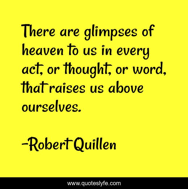 This page presents the quote "There are glimpses of heaven to us in every act, or thought, or word, that raises us above ourselves.". Author of this quote is Robert Quillen. This quote is about thought, heaven, word,.