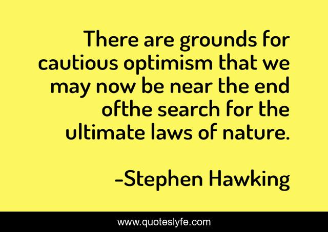 This page presents the quote "There are grounds for cautious optimism that we may now be near the end ofthe search for the ultimate laws of nature.". Author of this quote is Stephen Hawking. This quote is about search, end, optimism,.