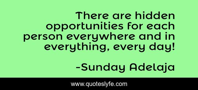This page presents the quote "There are hidden opportunities for each person everywhere and in everything, every day!". Author of this quote is Sunday Adelaja. .